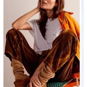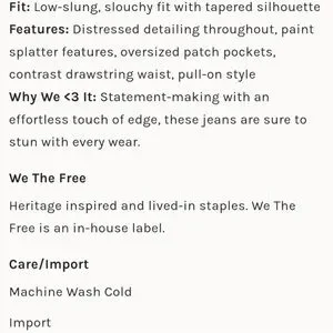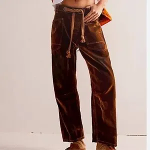 We The Free by FREE PEOPLE: “Moxie Flocked” Low Slung Barrel Jeans in RUST…NWT