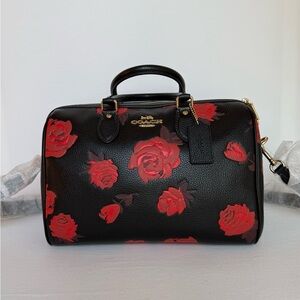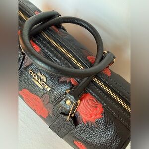 Coach Black and Red Rowan Large Satchel Bag With Floral Print NWT
