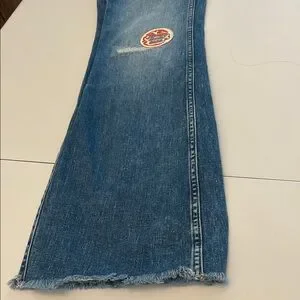 Stylish high rise jeans. Features unique patches. Classic Wrangler design.