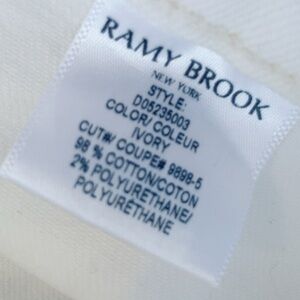 Chic Ramy Brook white jeans featuring a flattering high-rise fit and classic 5-pocket styling. Made from a comfortable cotton blend with stretch for an easy, polished look. Perfect for spring and summer outfits, styled casually with sneakers or dressed up with heels and a blouse.