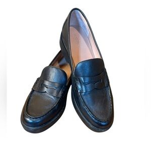 Nordstrom Black Leather Loafers Size 9M 1.25" Heel Classic Dark Academia