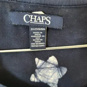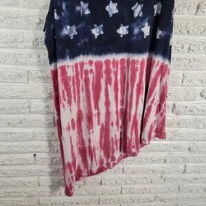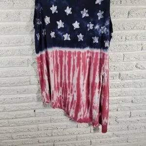 The Chaps 4th of July Dress is a patriotic tank dress in size 2X, featuring a red and blue color scheme with an asymmetric hem. Made from a comfortable cotton blend material, this sleeveless dress has a crew neckline and a pullover closure, making it ideal for casual or travel occasions. With a shift style and tank dress design, this lightweight and stretchy dress is perfect for any season, whether it's winter, summer, fall, or spring. The side slit adds a touch of flair to this machine washable garment, which is sure to show off your patriotic style.