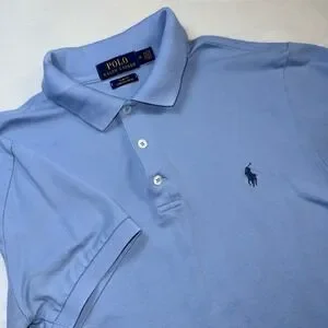 Keywords: Ralph Lauren, Polo shirt, Slim fit, Stretch mesh, Light blue, Men's casual, Embroidered pony, Classic, Smart casual, Everyday wear, Breathable, Comfortable