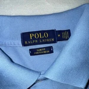 Polo Ralph Lauren Slim Fit Stretch Mesh Polo Shirt Light Blue Size M Preppy
