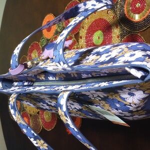 New with tag retail $145. Beautiful purple floral pattern. Bonus flower charm keychain included. Approx measurements 14 x 13 x 3 inches