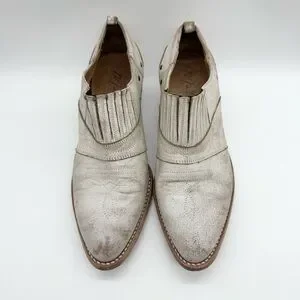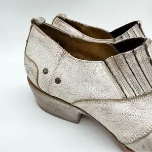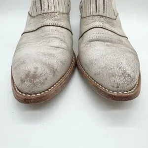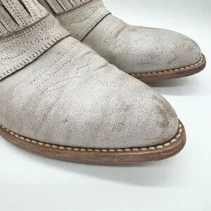 Matisse Roscoe Distressed Leather Almond Toe Heeled Western Bootie Cream Sz 8.5
