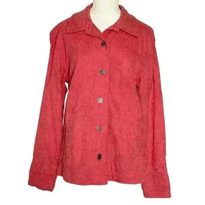Chico’s Embroidered Coral 100% Cotton Lightweight Jacket Size Medium