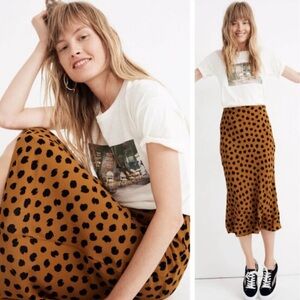 Madewell Brown and Black Polka Dot Midi Skirt