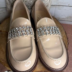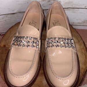 RARE AGL Lola Strass Mixed Crystal Patent Loafers Nude 40 - $585 Retail