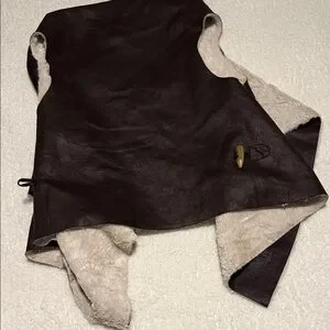 Stylish women's vest featuring a sleek dark brown nubuck exterior and a soft feather sherpa cream interior. Perfect for layering and adding a touch of elegance to any outfit.