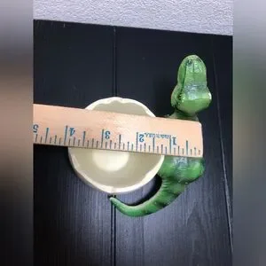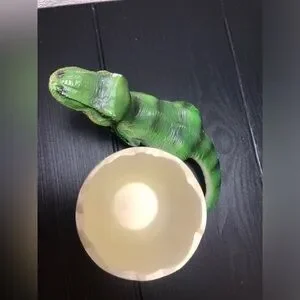 Fun dinosaur-themed toothbrush holder. Perfect for kids' bathrooms. Cream and green colors. Great condition
