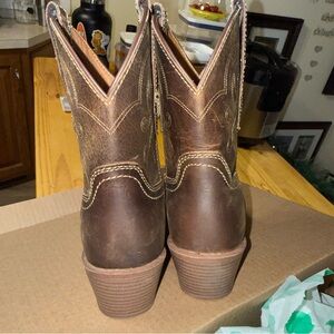 Stylish brown heeled boots. Intricate stitching design. Perfect for any occasion.