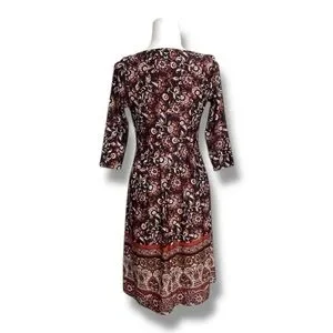Shelby & Palmer Burgundy Floral Fit & Flare Midi Dress 3/4 Sleeve Women’s Small