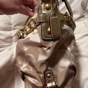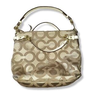 Coach Brooke Sateen Signature Shoulder Bag in khaki and gold