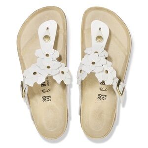 NWT Birkenstock White Leather Gizeh Flower Arizona size 8/ 38