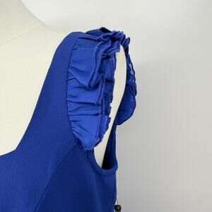 Adrianna Papell Bluebsatin Crepe High Low Dress 4 Ruffle Sleeve Cocktail Party