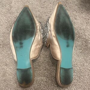Glamorous Betsey Johnson Rhinestone Bow Satin Mules