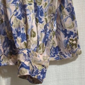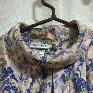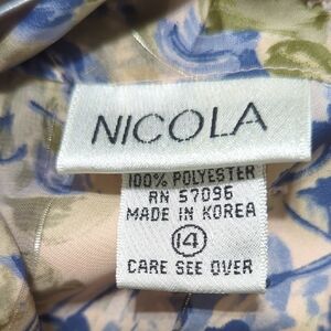 Vintage NICOLA Floral Blouse Women's 14 Pleated Front Buttons Lightweight
