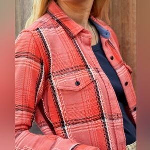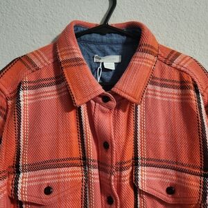 Outerknown NWT Women’s Dawn Blanket Shirt Orange Plaid pattern Organic Cotton