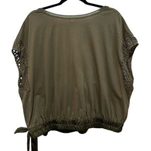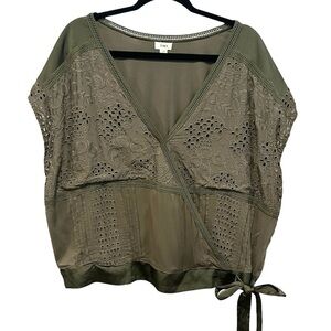 Tiny Anthropologie Tatiana olive green short sleeve faux wrap top size 2X