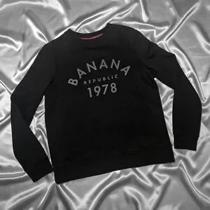 Stylish black sweatshirt with grey printed lettering from Banana Republic. Perfect for a comfy layered look and casual outings. Fit is regular, NOT baggy or oversized. Made from 77% Cotton and 23% polyester. 🖤