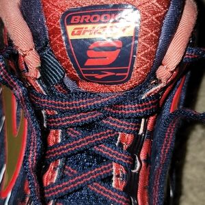 BROOKS Ghost 9 Women's Blue and Red Athletic Shoes with Gold Highlights