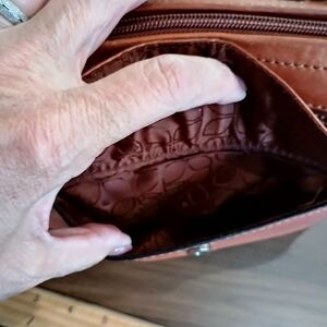 This leather fossil bag is gorgeous. Please see photos, there are some pen marks on the outside of the purse.