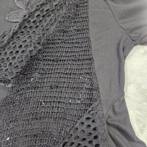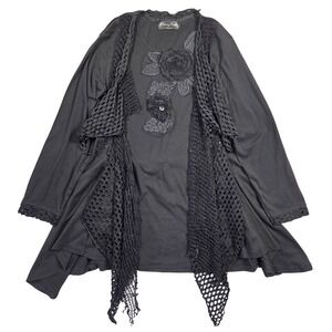 Pretty Angel Black Lace Crochet Mesh Tunic Top Cardigan Overlay Women L Boho