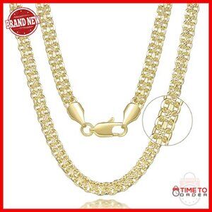 14K Gold Plated Double Layer Cuban Link Chain Necklace Lobster Clasp