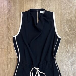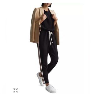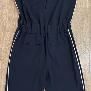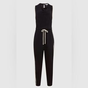 Reiss Tyla Side Striped Jumpsuit Navy. Blue and White Open Back Tie Waist Size 8