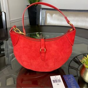 Polo Ralph Lauren Polo ID Suede Mini Shoulder Bag Geranium Red NWT