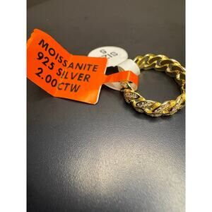 NWT Sz. 5 -2ct Vermeil Moissanite over 925 Silver Cuban Ring