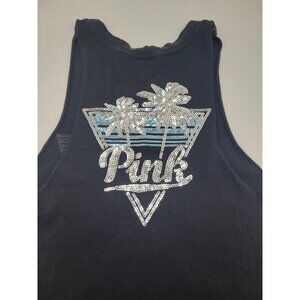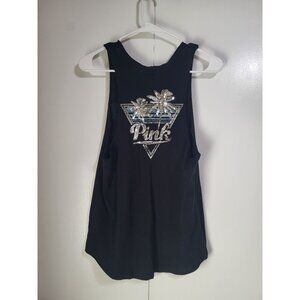 VS PINK Tank Top Womens XS Black Sleeveless Muscle Bling Logo y2k style Beach