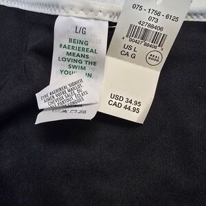 Aerie high waisted bikini bottoms, brand new with tags! These are so super cute! I love the black with the subtle stripes and the white trim - they'll match so many different types of bikini or tankini tops! Perfect for vacation!