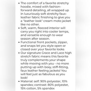 Grace and lace Move free leather like moto Jacket