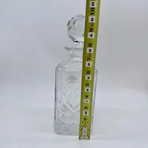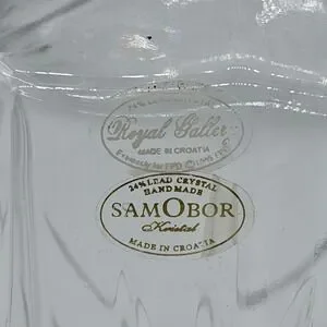 Elevate your home bar with this exquisite Royal Galler Samobor crystal decanter. Crafted from heavy 24% lead crystal, this decanter boasts intricate geometric cuts that catch the light beautifully, creating a dazzling display. The faceted crystal stopper fits snugly, preserving the aroma and integrity of your favorite spirits. Imagine this stunning piece gracing your sideboard during intimate gatherings or special celebrations, adding a touch of timeless elegance to every pour. Perfect for whiskey connoisseurs, as a sophisticated wedding gift, or simply to enhance your everyday enjoyment.
