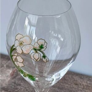 A pair of lead free crystal glasses from Perrier Jouet with the iconic Belle Epoque flower detail.