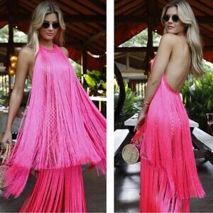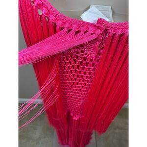 NWT ANDREA ALMEIDA Pink Bel Crochet Fringe Tiered Maxi Dress is marked as a Size Large but fits more like an XS/S and is brand new with tags!