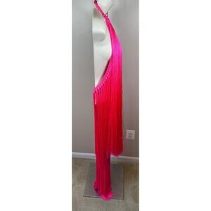 ANDREA ALMEIDA Bel Crochet Fringe Tiered Pink Maxi Dress Size XS/S