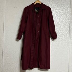 London Fog Vintage 80s Burgundy Red Lined Trench Coat Belted Classic Petite 14