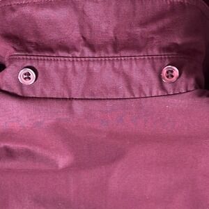 A classic London Fog burgundy trench coat for women. This timeless piece features a full button front closure, a matching fabric belt for cinching the waist, and adjustable cuff straps. Its removable lining and versatile design makes it suitable for everyday wear or for adding a polished touch to your professional attire. Perfect for transitional weather or a sophisticated evening out.