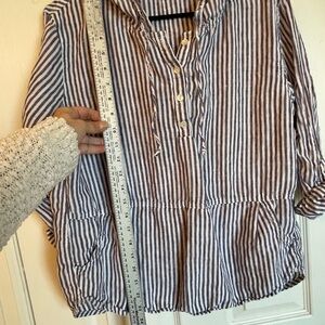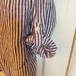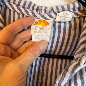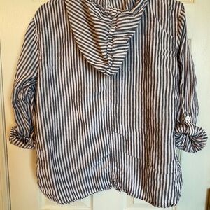 C&C California Blue White Striped Linen Hooded Top Size M