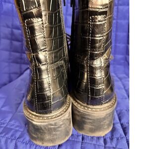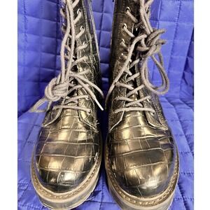Steve Madden Black Croc Embossed Leather Lace Up Combat Boots Lug Sole Moto Goth