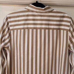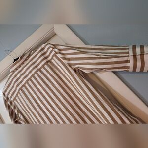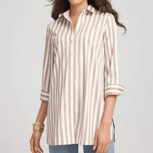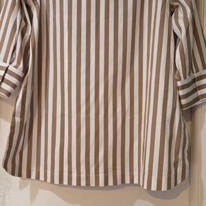 Women's Chico's No Iron Neutral Striped Tunic, Size 8. NWT. Color is called Cafe Aroma. 3/4 sleeves.