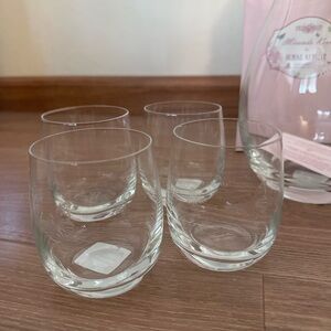 Royal Albert Miranda Kerr Friendship Butterfly Design Set of 4 Beverage Glasses. Brand new and in excellent condition with no damage or defects. Beautiful clear glass with butterfly design. Perfect for serving beverages in style. Comes from a smoke free and pet free home.
