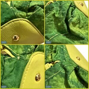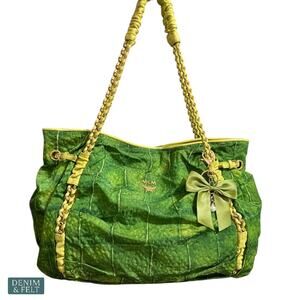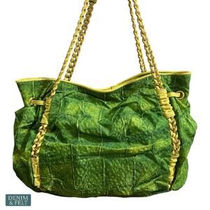 MCM Green Leather Shoulder Bag Gold Chain Handles Vintage Rare Purse Tote