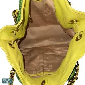 A true collector’s piece — bold, rare, and unmistakably vintage MCM. The statement green leather paired with gold chain handles makes this bag a standout while still being completely wearable.