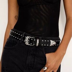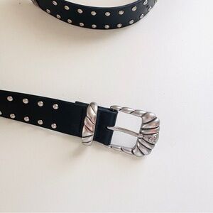 Channel your inner cowgirl with the Wide Studded Western Belt. It makes an instant statement with its custom western-inspired buckle and studs, which emulate the look of the finest gold jewelry. Crafted from smooth premium vegan leather, it delivers timeless appeal and a perfect fit, thanks to its five adjustment holes.
