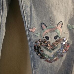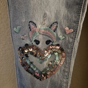 These charming light blue jeans for kids feature a cute sequin heart design, adding a touch of sparkle to any outfit. Perfect for everyday wear, they combine comfort and style effortlessly.