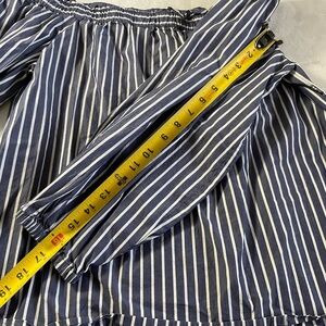J Crew Off The Shoulder Top Blouse Women Size 12. Blue White Stripe 100% Cotton